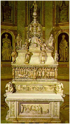 Por fin, el 16 de julio de 1473, se levantaron de nuevo los mármoles del monumento, y fueron sustituidos por esculturas más acabadas, del gusto del siglo XV. Eran obra de Nicolás de Bari, y representan diversos pasajes de la vida del Santo.